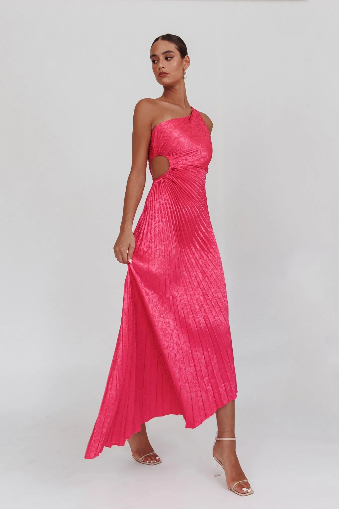 Steal the spotlight in our gorgeous Amelie maxi dress. It features a one-shoulder style and accordion pleat detail and is perfect for a glam, special event, or birthday celebration. Team it with nude stilettos and a clutch for a showstopping look.
