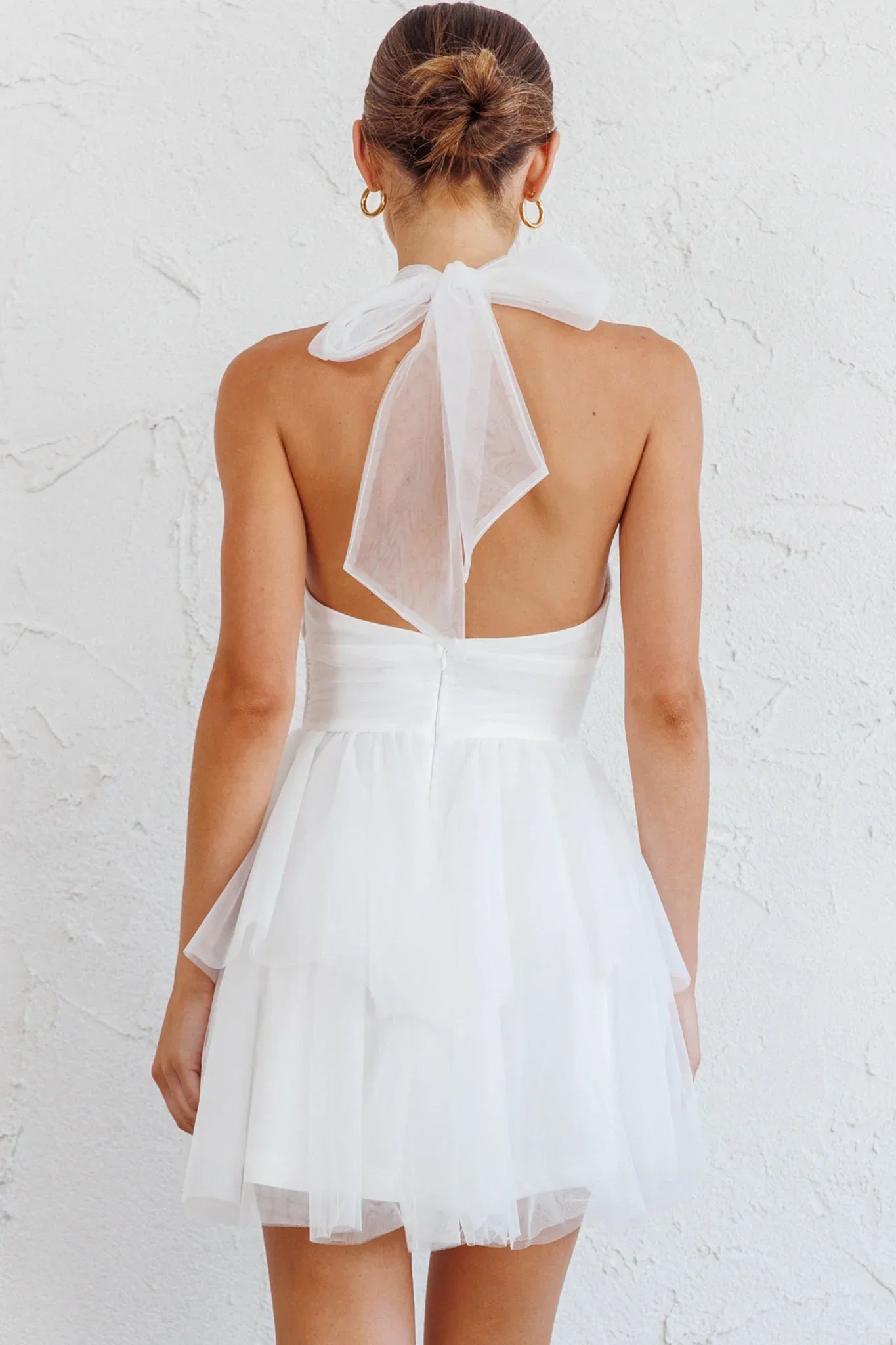 You'll feel like a princess in our stunning Andria mini dress. Perfect for a wedding or special occasion where you need to look like literal royalty. We are obsessed with its romantic tulle and gorgeous high-neck halterneck. Team it with diamante heels and a satin clutch for a look that'll leave Prince Charming speechless.