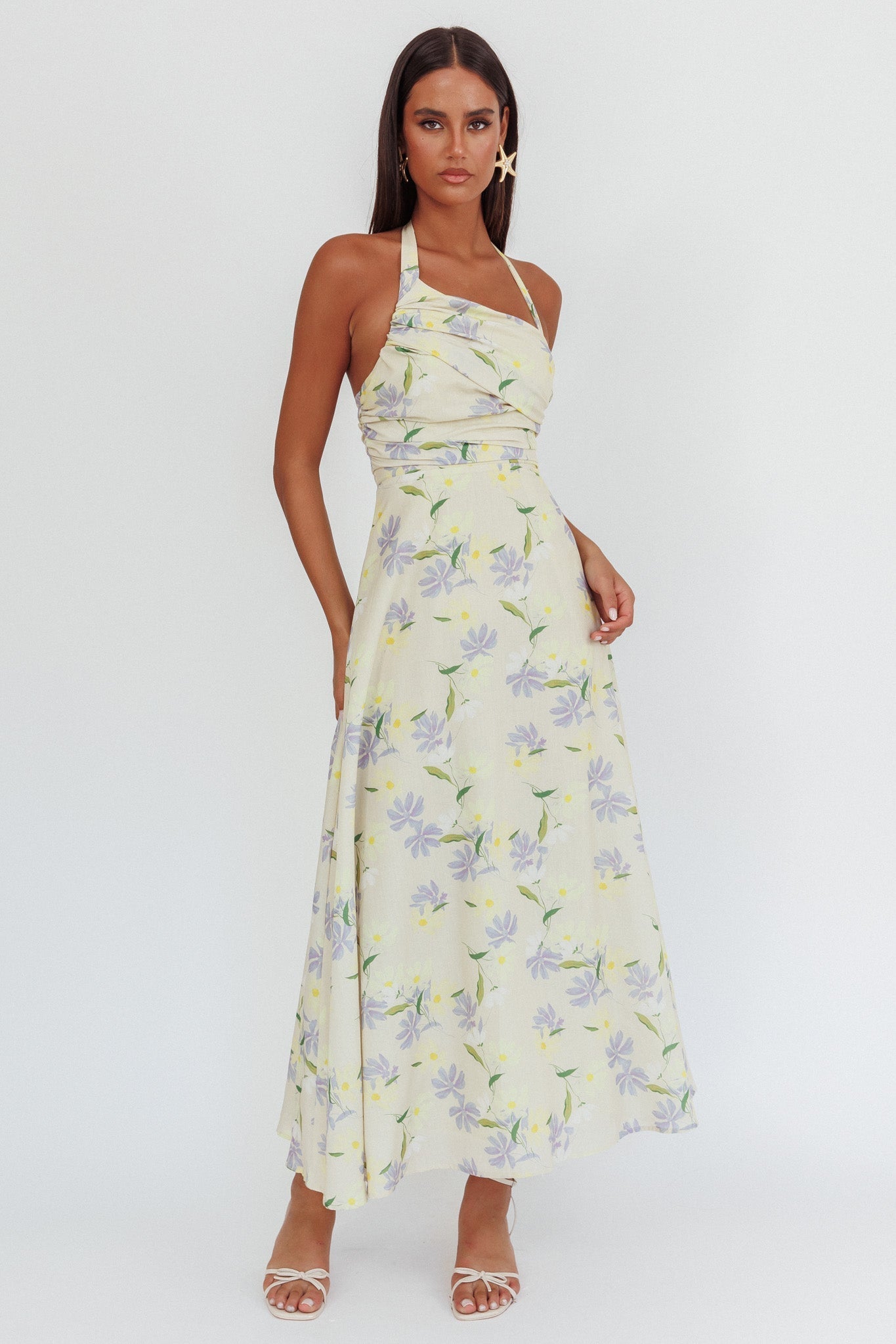 You'll be flooded with compliments in our stunning Auriana maxi dress. It features a chic asymmetric neckline and halter design. It's perfect for a wedding or birthday celebration, teamed with strappy, tie-up heels and a clutch to complete the look.
