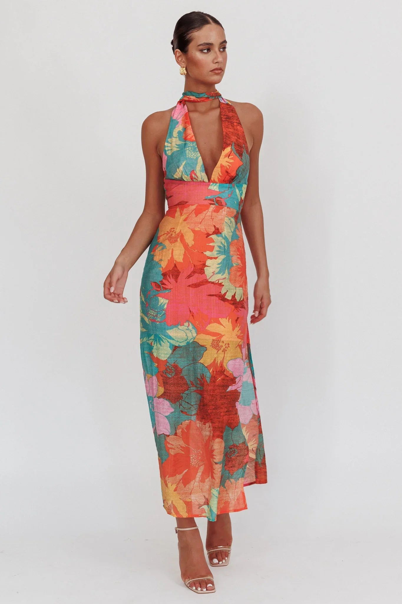 Steal the show in our gorgeous Cipriana maxi dress. It features a halter design and a low back and is perfect for a girls' night out, sipping cosmos and laughing 'til it hurts! Team it with nude heels and a hobo bag for an unforgettable look.