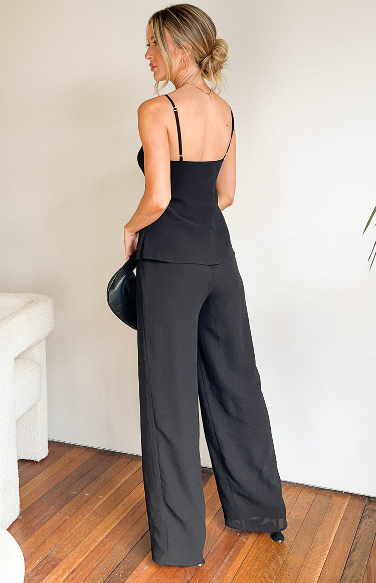 Look chic and classy in our Rune black jumpsuit. A great comfortable and effortless option for a dinner or event. Style with and a black mini for the perfect sophisticated look.