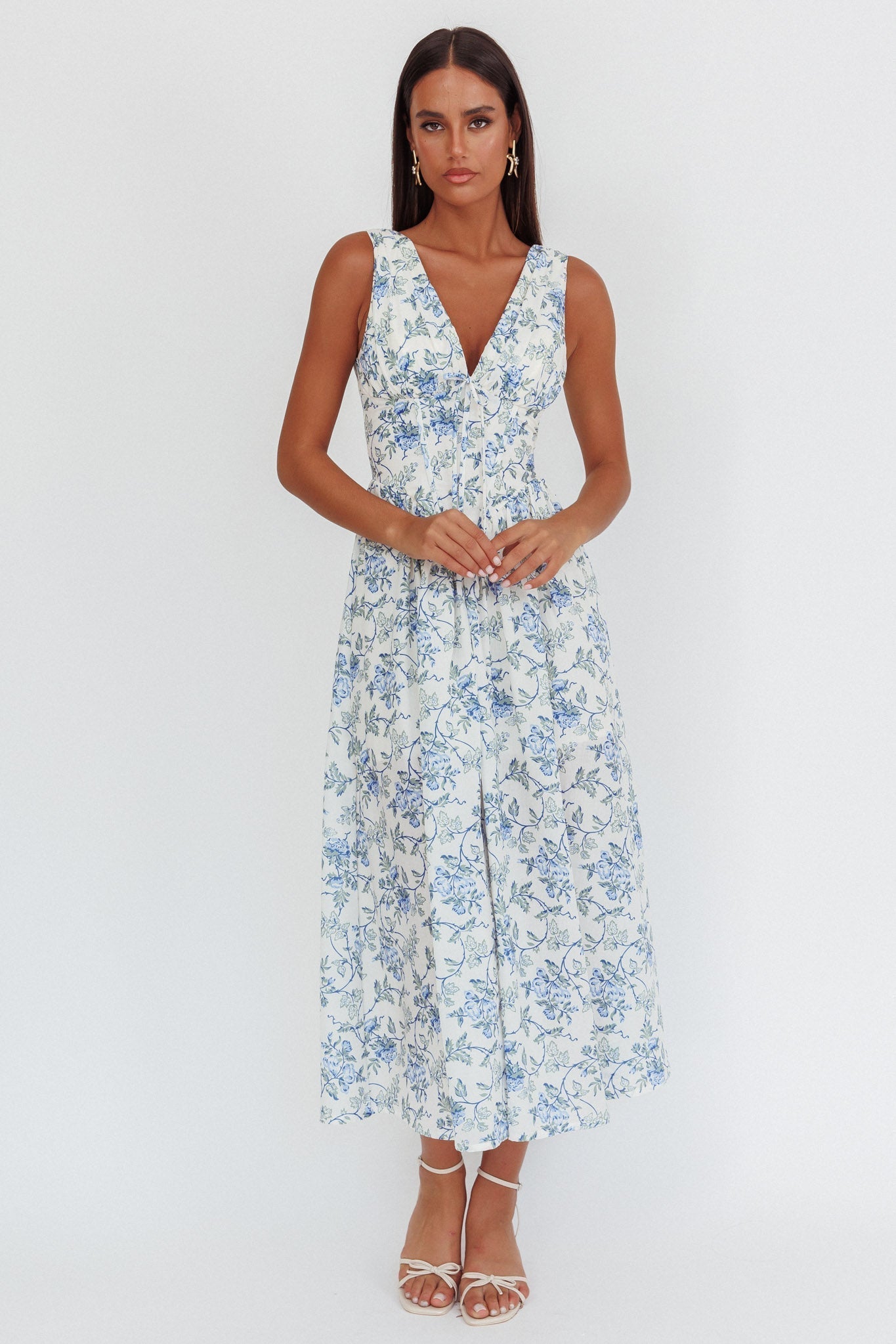 Float through your weekend in our gorgeous Spring Dawn maxi dress. It features a stunning floral print and a flattering basque waist and is perfect for Sunday brunch with your girls or a flirty date night. Team it with kitten heels and a saddle bag for an elegant look we are head over heels for.